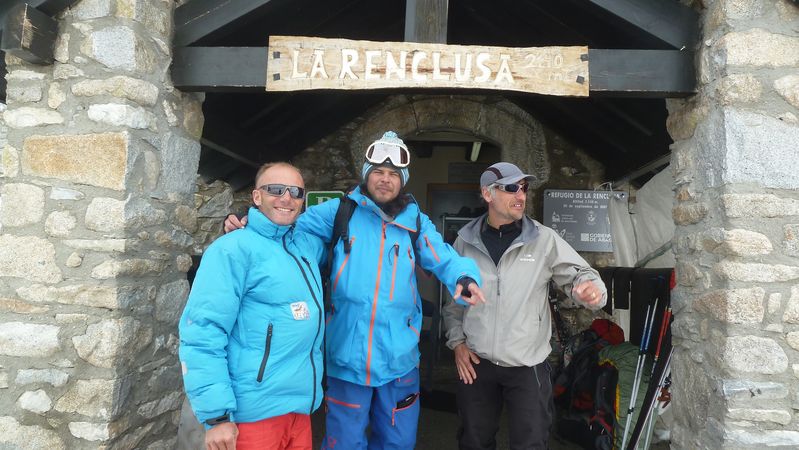 On arrive au refuge un peu cassé et l’esprit encore dans les joies du ski, quand nous voyons arriver un fada avec des skis de 8kg, 120mm au patin et chaussures de ski de piste compétition avec chausson en liège et flex de 140, adaptateur sur la fix de piste pour monter et un sac de 20kg. Deux minutes après son collègue arrive: pareil.