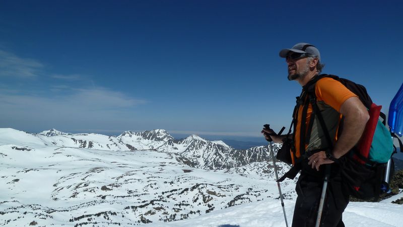 Le panorama est grandiose et suffit à mon bonheur, mais Patrice est gourmand, le Grand Péric lui fait terriblement envi. « c’est dommage , il est tout près … » me supplit-il. Et le voilà qui se déchausse pour finir l’ascension du grand frère. Quant à moi, je préfère descendre sans attendre sur une neige déjà trop transformée, chacun son plaisir.